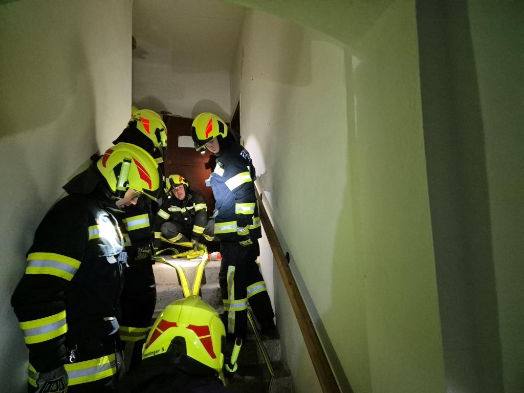 Als weiterer Zwischenschritt in der Praxisausbildung wird die Theorie der vergangenen Woche in die Praxis umgelegt. Das Verlegen von Schläuchen in Treppenhäusern ist bei der Brandbekämpfung ein zentraler Punkt. Zusätzlich wurde das Thema Brandbekämpfung und Strahlrohrführung beübt