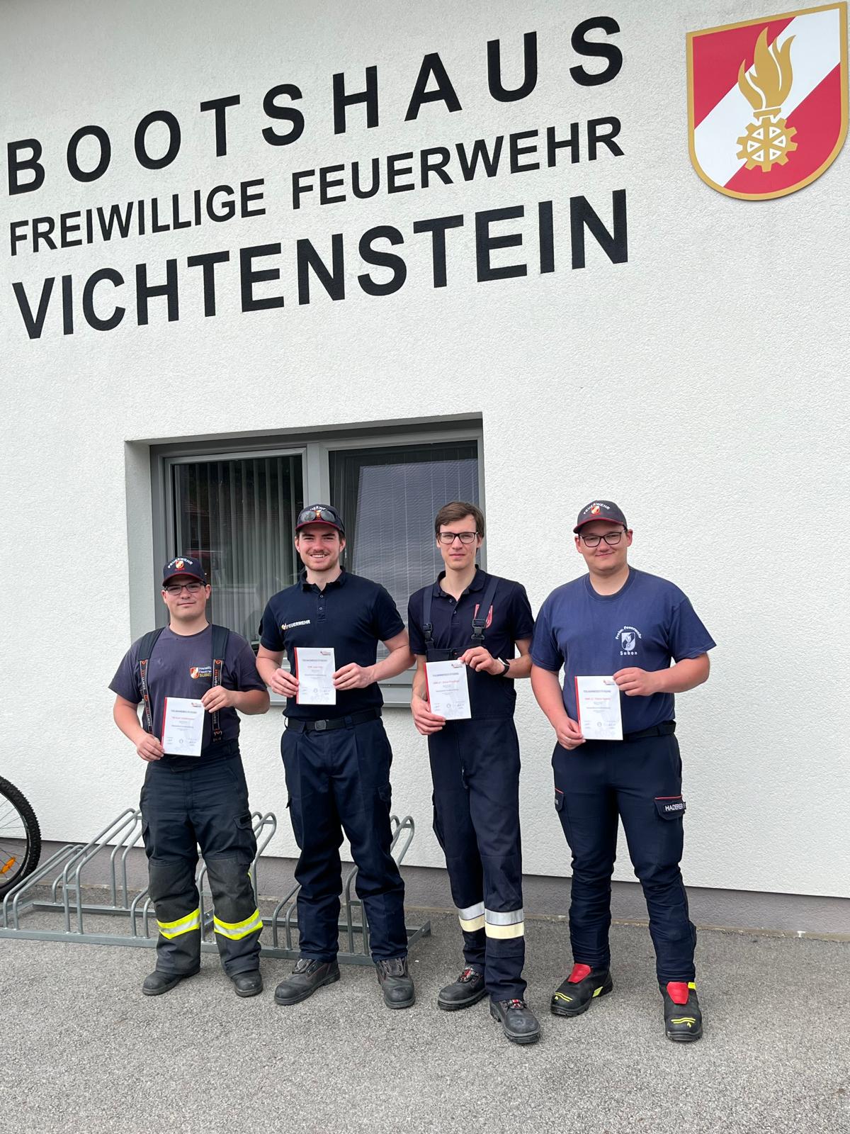 Die schriftliche und praktische (Fahren und Knotenkunde) Prüfung wurde am 3. Mai gegen 16:00 Uhr von unseren 4 Teilnehmern natürlich bestanden.