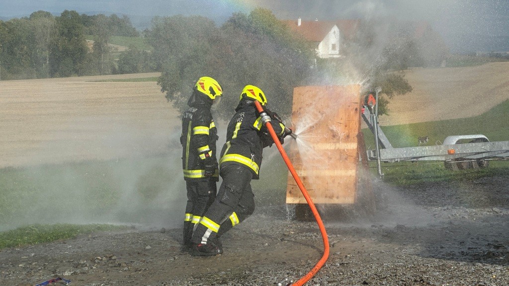 Aufgrund der exponierten Lage des Übungsobjekts musste die Wasserversorgung aus zwei unterschiedlichen Richtungen über eine Strecke von fast einem Kilometer mit ca. 50 Höhenmetern sichergestellt werden. Zur Übung wurden unter anderem auch die Drehleiter aus Schärding, mehrere Tank- und Rüstwägen der umliegenden Feuerwehren sowie etliche weitere Feuerwehrkameraden mit Atemschutz alarmiert. Um in der Anfangsphase (Chaosphase) und bis die Wasserversorgung über die Zubringleitungen sichergestellt werden konnte, genügend Wasser für die Löscharbeiten vorrätig zu haben, wurde mit Tankfahrzeugen ein Pendelverkehr eingerichtet.