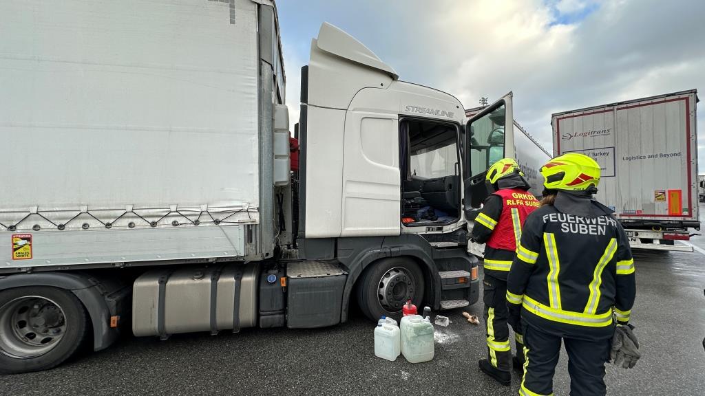 Die FF-Suben überprüfte mittels der Wärmebildkamera die Fahrerkabine und konnte keinerlei Hitzequellen auffinden.