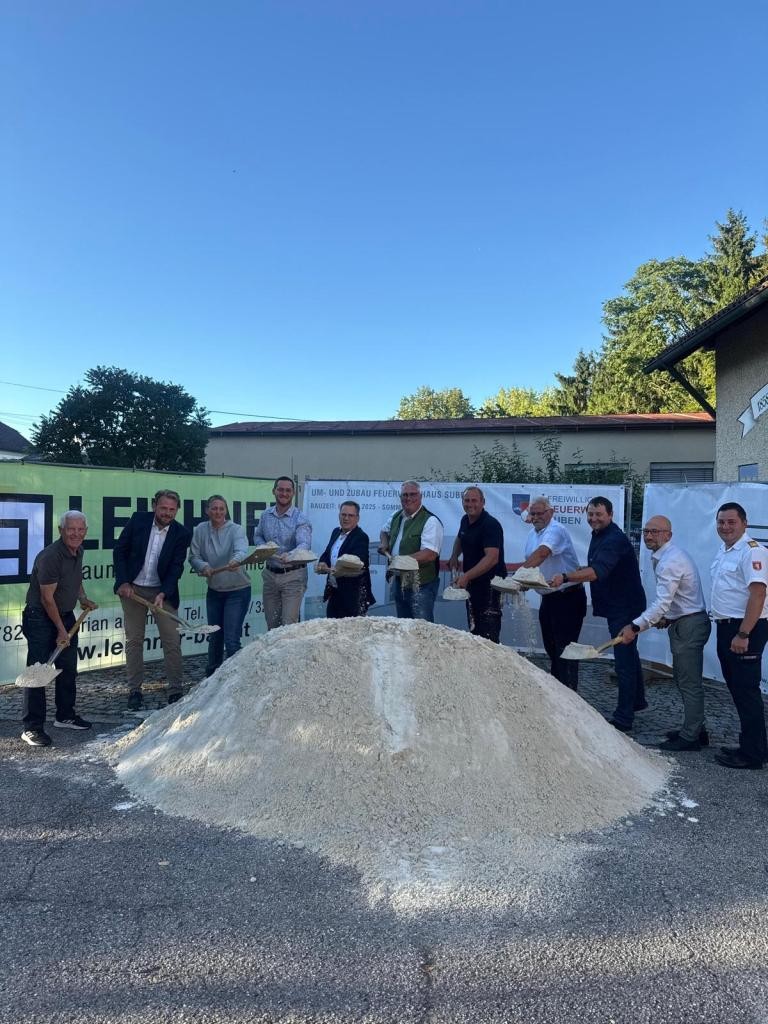 Unter Beisein zahlreicher Vertreter der Gemeinde, allen voran dem Bürgermeister, dem ÖVP-Klubobmann und Bezirkschef August Wöginger sowie dem Bezirksfeuerwehrkommandanten wurde durch den symbolischen Spatenstich der Beginn der Um- und Zubauphase zum Feuerwehrhaus Suben eingeleitet.