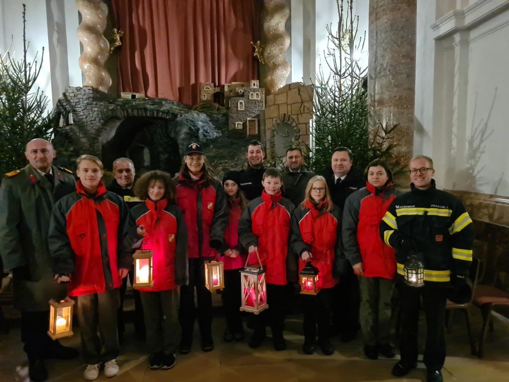 Eine besondere Ehre wurde zwei Jungfeuerwehrmitgliedern zu teil. Sie durften im Stift St. Florian bei Linz bei einer feierlichen Übergabe durch ranghohe Vertreter der Feuerwehr das Licht des Friedens in empfang nehmen.