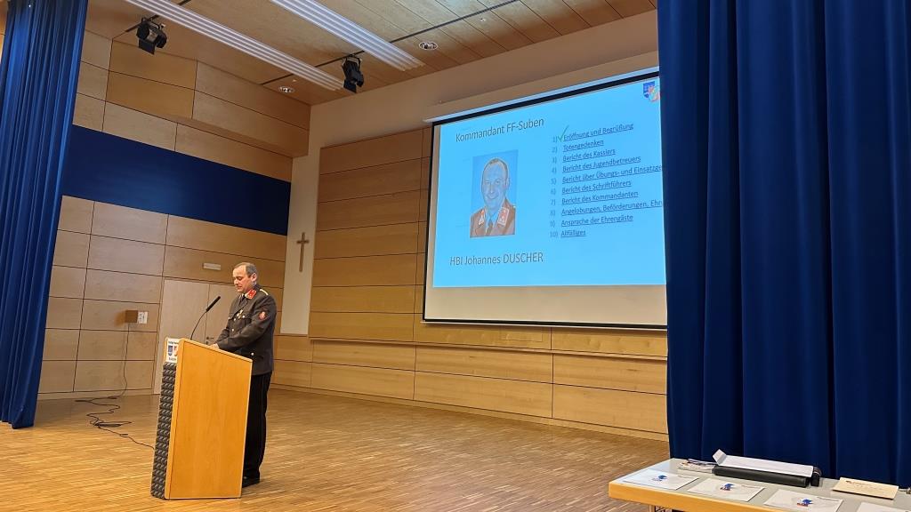 Kommandant Duscher Johannes bedankte sich in seiner Ansprache bei der Gemeinde, bei der Polizei Suben, der Justizanstalt Suben, beim Abschnittsfeuerwehrkommando für die immerwährende gute Zusammenarbeit.