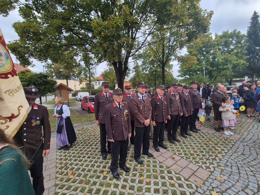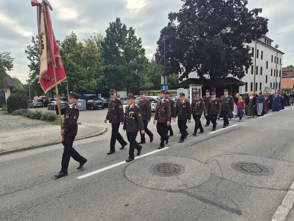 16 Kameraden nahmen an den Feierlichkeiten zum Erntedankfest in Suben teil. Kurzfristig wurde die B149 durch Lotsen für den Verkehr gesperrt bis der Festzug vom Pfarrhof in die Kirche eingezogen war.