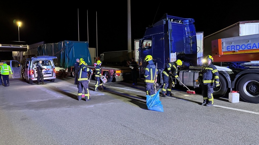 Die FF-Suben wurde gemeinsam mit der FF-St. Marienkirchen/Schärding zu einem Einsatz "Ölspur/Ölaustritt" gegen 22:54 Uhr gerufen. Einsatzort war die A8 Fahrtrichtung Deutschland (A3) im Bereich Grenzübergang/Zollamt Suben. Die FF-Suben rückte zunächst mit einem Fahrzeug zur Einsatzstelle aus. Am Einsatzort angekommen wurde der Einsatzleiter gleich durch die bereits anwesende Autobahnpolizei über die Lage in Kenntnis gesetzt. Einsatzgrund war ein Dieseltank eines LKW der zu voll getankt war und beim abstellen überlief. Aufgrund der Überschaubarkeit des Einsatzaufwandes konnte die FF-St. Marienkirchen, welche mit 2 Fahrzeugen ausgerückt war wieder abgezogen werden. Das ausgetretene Betriebsmittel wurde mit Ölbindemittel und Ölbindefließ gebunden. Im Anschluss konnte die Fahrspur wieder durch die Polizei für den Verkehr freigegeben werden.