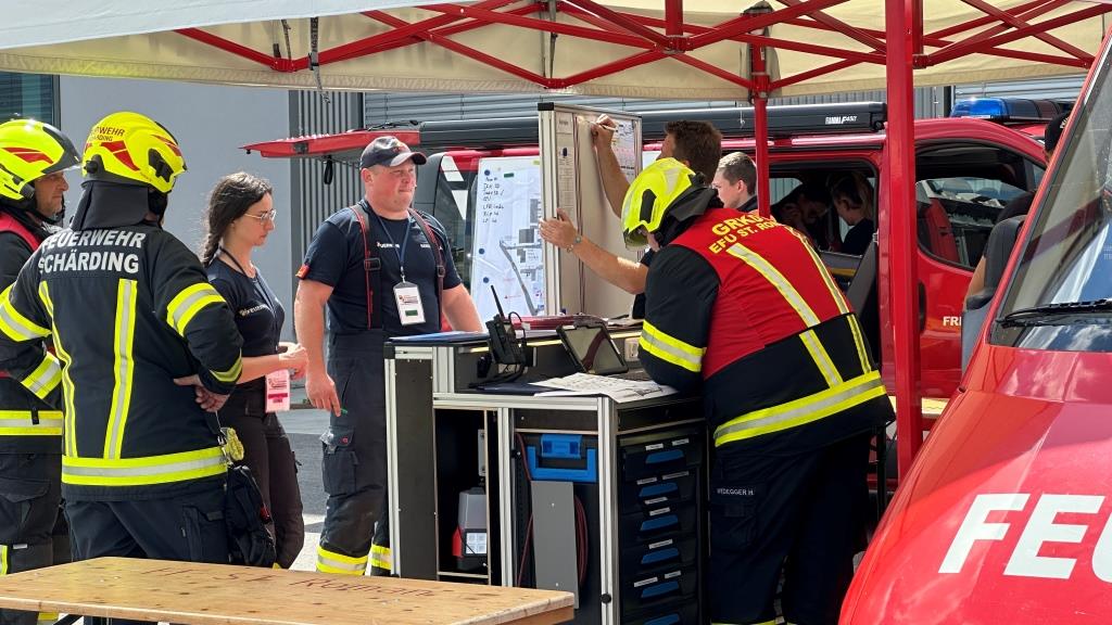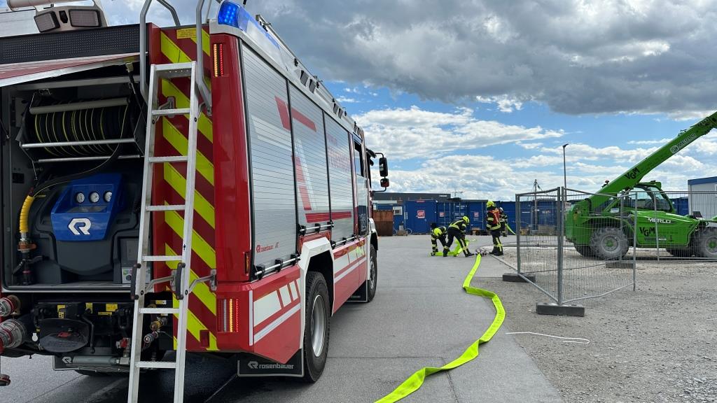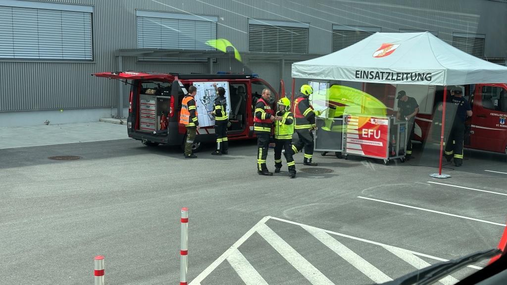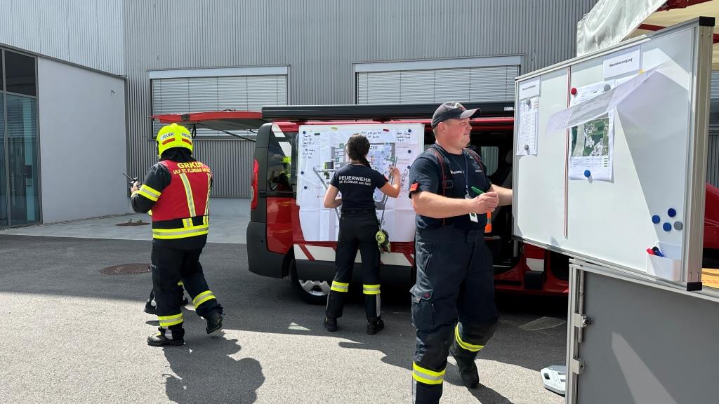 Pünktlich um 14:15 Uhr wurde die FF-St. Florian am Inn zur Einsatzübung bei der Fa. EVG in St. Florian alarmiert. Im Rahmen der Lageerkundung am Einsatzort wurde gegen 14:25 Uhr die Alarmstufe 2 ausgelöst.