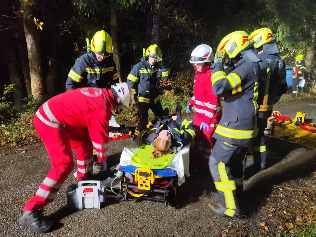 Am Ende des Ausbildungsblocks "Technischer Einsatz" wurde eine große Abschlussübung mit Unterstützung des Roten Kreuz Schärding abgehalten. Übungsannahme war ein Verkehrsunfall in einem bewaldetem Gebiet, bei dem die Fahrerin durch die FF-Suben aus dem Fahrzeug möglichst schonend befreit werden, um vom RK-Schärding weiterversorgt zu werden. Im Anschluss wurde auch noch das Unfallfahrzeug entsprechend geborgen.