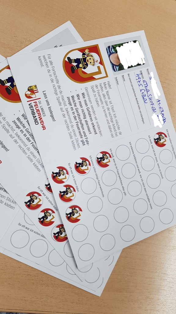 Für die Jüngsten bei der Jugendgruppe gibt es den Flori Pass. Damit können die Kinder bei den Aktivitäten mit der Feuerwehr Aufkleber sammeln.