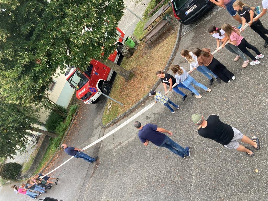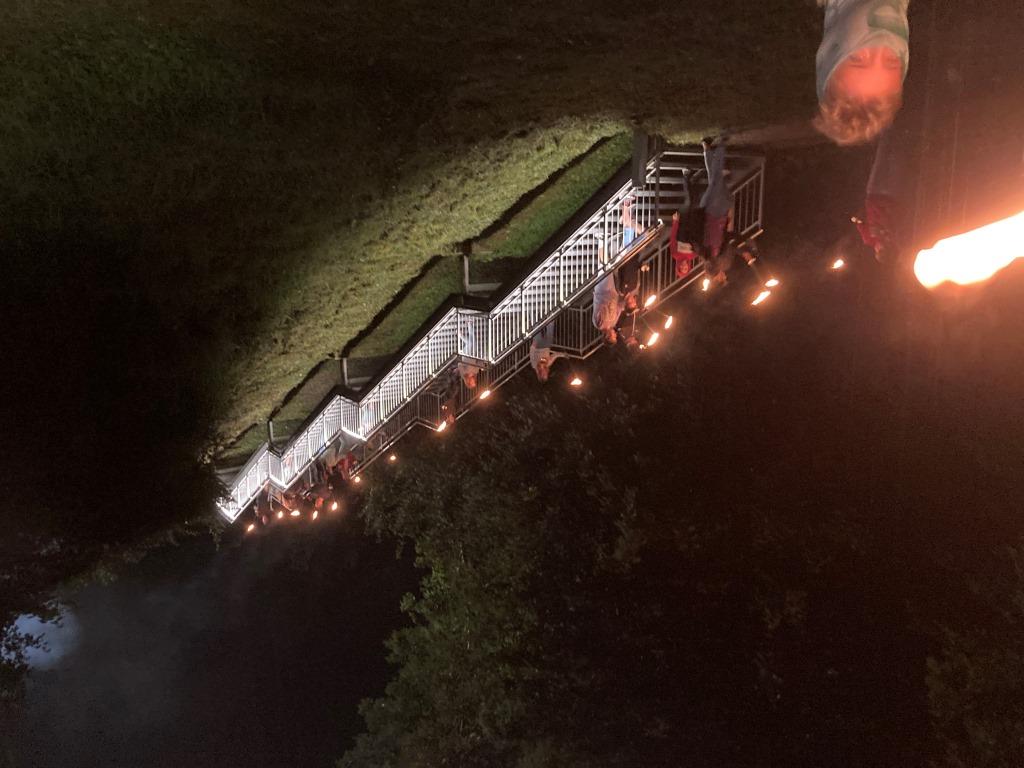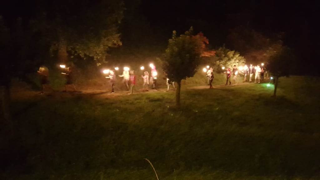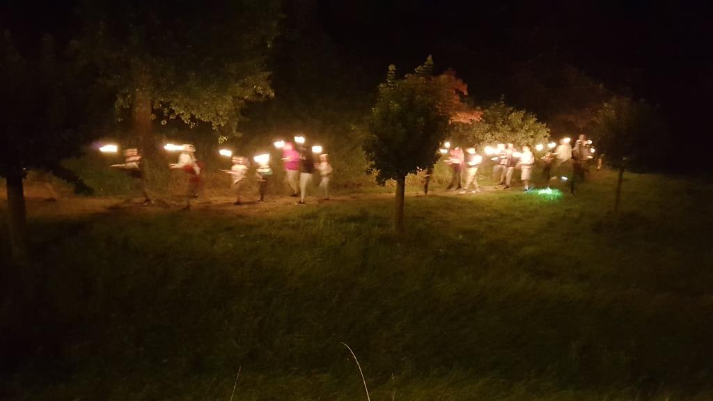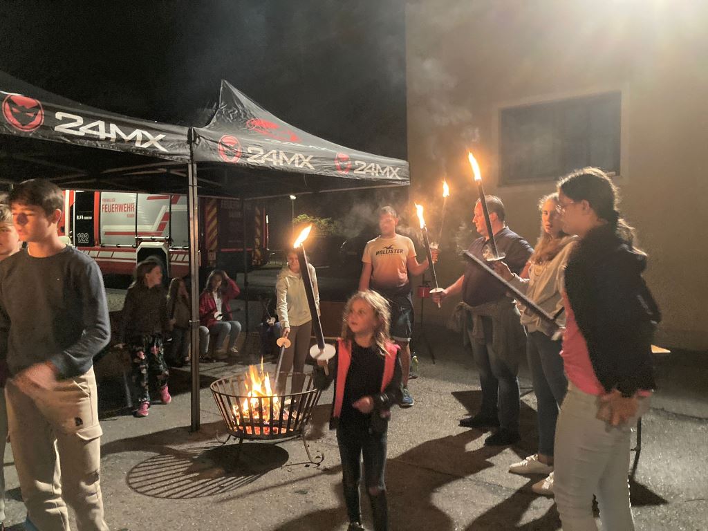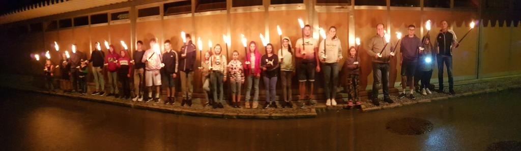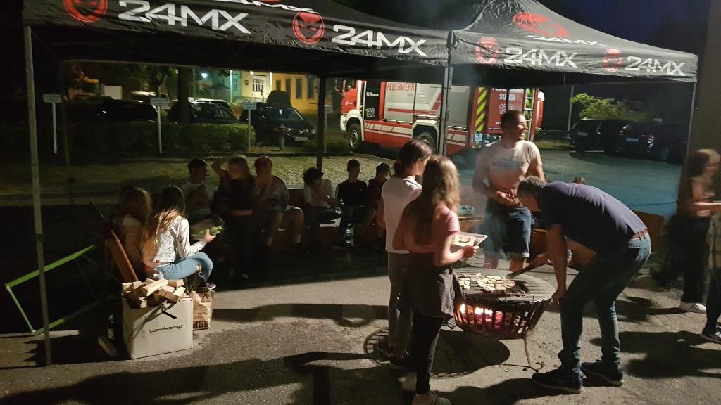 Im Anschluss an den Film erfolgte die Rückreise ins Feuerwehrhaus. Hier wurde am Vorplatz alles für das abendliche Grillen vorbereitet. Nach dem üppigen Abendessen gings auf zur Fackelwanderung in Suben.